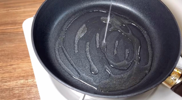 Step 2: Pour some cooking oil onto a pan and turn on the stove to medium heat.