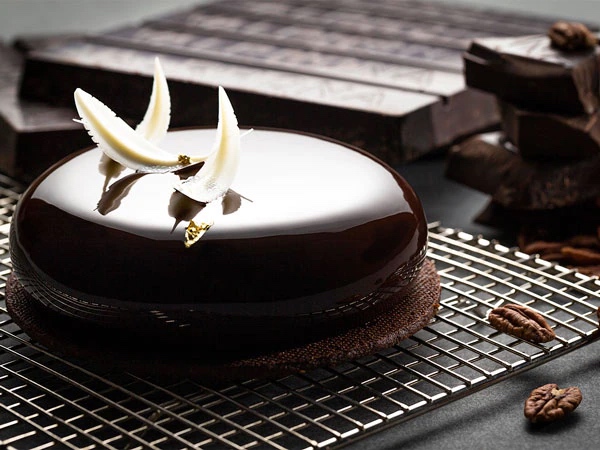 It consists of three incredibly smooth layers of dark chocolate sponge layered with a rich dark chocolate ganache and luxuriously decorated with edible gold flakes and Moroccan rosebuds. And the best part? The cake is amazingly light on calories so you can indulge in this guilt-free at any time of the week.