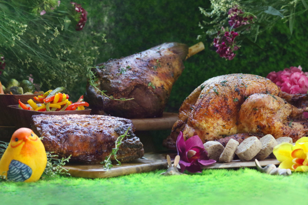 You also have these options to choose from: Grain-Fed Angus Beef Ribs, Roasted Mediterranean Bone-In Lamb Leg, Greek Yoghurt Roasted Lamb Rack, Herb Roasted Beef Ribeye, and Chicken Cranberry Stuffing – all of which are served with brown sauce.