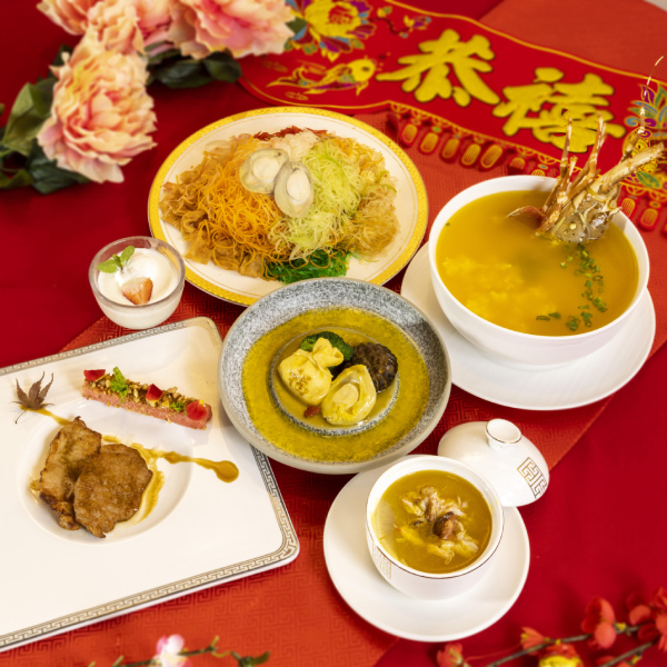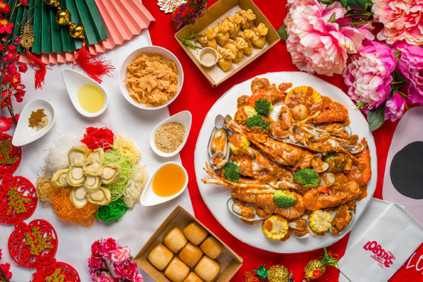Toss to great health and fortune with the Salmon Yusheng with Five Seafood Treasures and lose yourself in mouthwatering dishes like the Golden Creamy Pumpkin Butter Crab, Braised Pork Trotter, and Nonya Fried Seabass.