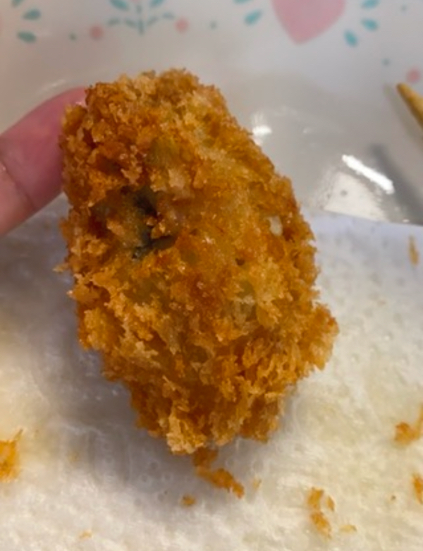 Our colleague isn’t a big fan of oysters, but her family is. As such, she decided to buy this frozen pack of breaded oysters in an attempt to prepare them a meal alongside some tonkatsu. Upon hearing the positive feedback about the deep-fried oysters from her family, she took a bite of it and was pleasantly surprised at how crispy and juicy the deep-fried oyster was!