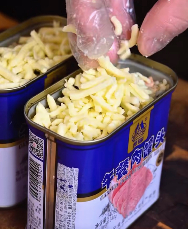 Step 1: Empty out two luncheon meat cans and wash them clean. Set them aside for the time being. If you’re not comfortable with using the cans due to health concerns over placing them in the oven later, you can also use disposable rectangular aluminium tins that are oven-safe.