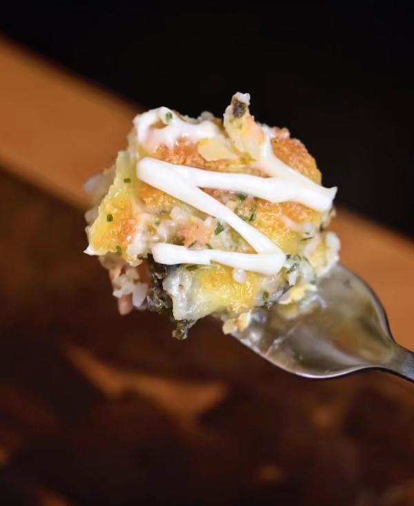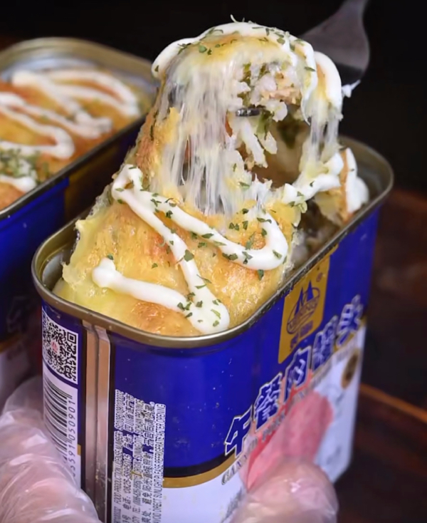 How do you fancy a decadent cheese baked rice with luncheon meat?