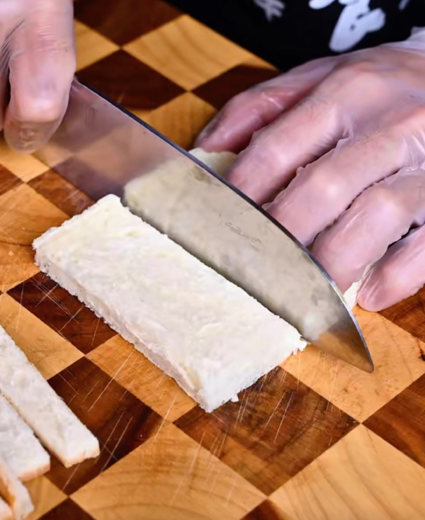 Step 6: Remove the crust from all four corners of your white bread, and cut the bread into quarters.