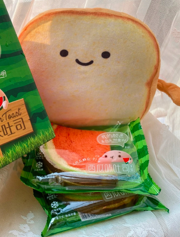 Since this watermelon toast is packaged individually, it makes it easy for anyone in a rush for work to bring it along with them in their bag to munch on when they get to the office.