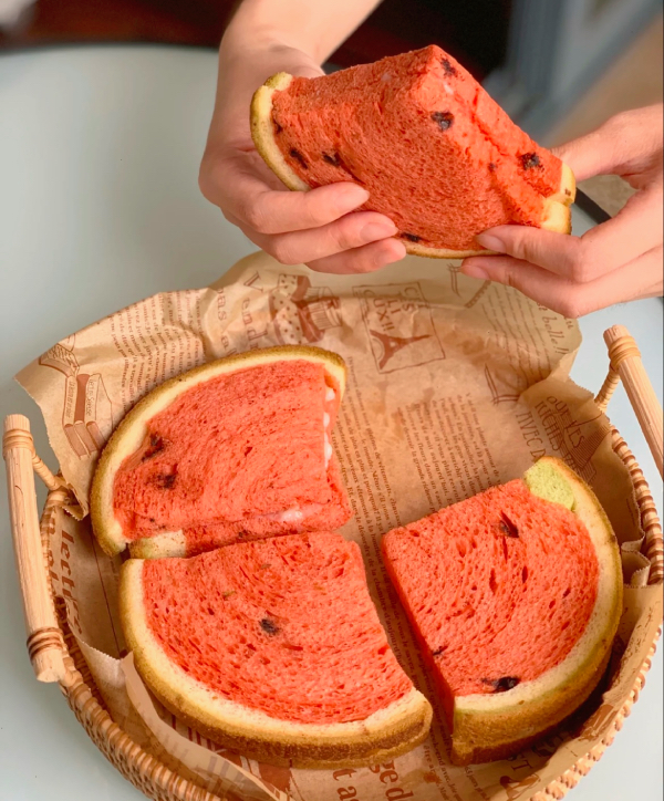 Yes, it’s bread that looks just like a slice of watermelon, with its red crumb to represent watermelon flesh and green crust to represent the watermelon rind. But that’s not all, according to those who have tried this unique treat, the bread is very soft even though it is called toast. Also, it has hints of watermelon thanks to the creamy filling that is layered between the two slices of bread, giving rise to a refreshing and addictive taste.