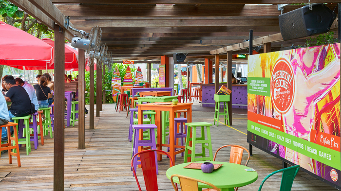 If you’re near Siloso Beach, there is the Bikini Bar. They aim to bring the likes of Bali beach bars to Sentosa’s shores and we dare say they’ve done it. This bar brings a good mixture of laid-back energy and an upbeat spirit. Those who are up for a fun beach game can enjoy a few rounds of beer pong but if you just want to lie back and enjoy some delicious bar bites, they’ve got nachos, tacos, and even satay!