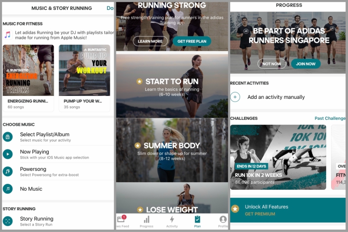 Adidas Running by Runtastic is available on iOS and Android. | Free or Premium subscription at SGD 50.98/year with seven days free trial.