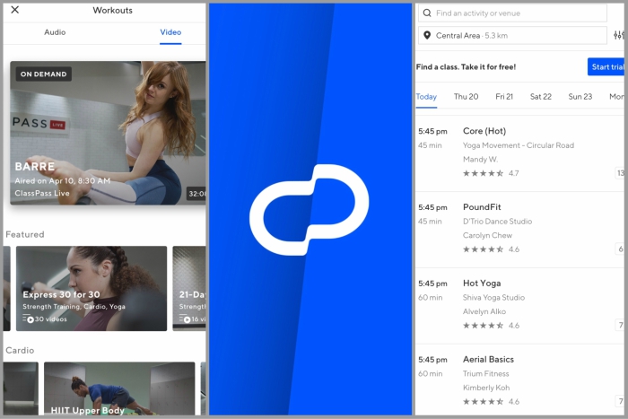 ClassPass is available on iOS and Android. | Free or Monthly membership ranging from SGD 19/month to SGD 315/month.