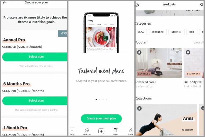 8Fit is available on iOS and Android. | Free or Pro Subscription ranging from SGD 25.98/month to SGD 84.98/year.