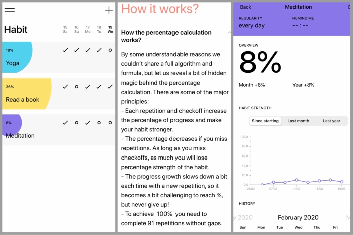 Like its name suggests, the Habit App helps you keep track of habits that you want to incorporate into your daily routine. Each habit can easily be distinguished by a colour of your choice to prevent any confusion. The app also provides a clear statistic of your progress and offers another point of perspective – that forming habits is a process and not just a task you want to check off your list.