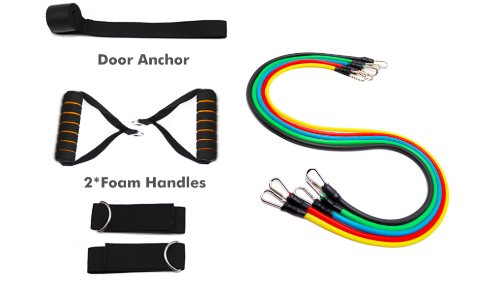 Handles and door anchors can be of great assistance in your workouts, especially for upper body exercises. This resistance band set comes with a door anchor and two foam handles to help you gain more stability.