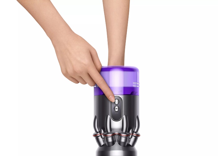 - Easy, no-touch bin emptying: the straight, slim bin has an ejection mechanism with a rotary catch, to drive out dust in one smooth action. A silicone collar wipes down the mesh shroud to drive out dust without dirtying your hands;