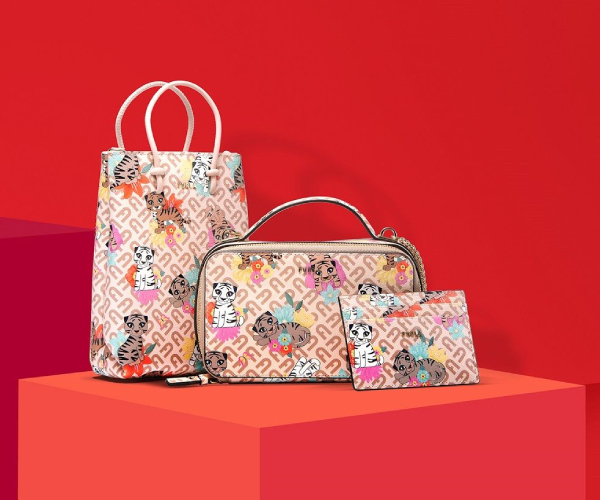 Under the CNY Capsule Collection, take a look at the BABYLON Collection which boasts a sweet pink base colour, FURLA’s iconic Arch Logo patterned all over, and several lifelike tigers peppered around.
