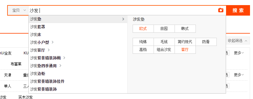 If you understand Chinese, try typing in the name of the item you want (e.g. sofa) and see the suggestions that Taobao provides and select the one that’s closer to what you’re trying to find.