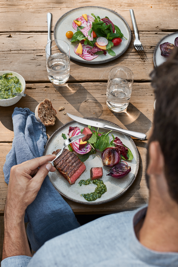 Thankfully, this 12-piece set by WMF is crafted with their Cromargan 18/10 Stainless Steel, and the steak knives have a specially designed serrated edge so they’ll stay sharp even after using them for prolonged periods of time.