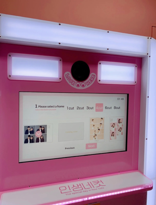 Upon entering the booth, you will be met with a screen that allows you to select the type of cut you would like. You can take individual shots, but if you’re intending to hop on the bandwagon and do what couples in South Korea do, choose the 4cut option. You can then choose the type of frame you want. This will determine how your story will unfold.