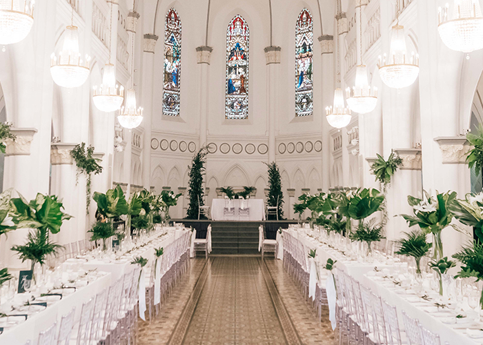 A stunning location, Chijmes is an exquisite 19-century neo-gothic chapel and is a refined National Monument of Singapore. With its towering high ceilings and detailed stained glass windows, the chapel’s aesthetics are complete with the motifs of flowers and birds detailing along its columns and corridors.