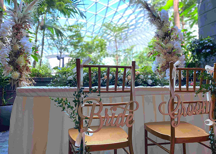 Hold your wedding at the Cloud 9 Piazza for a backdrop of the HSBC Rain Vortex. With a floral arch and exquisite botanical decor to compliment the setting, the piazza is large enough to fit all your friends and family to celebrate the joyous occasion with you. Another option would be the Canopy Park for a more romantic, intimate, and fairytale vibe to your big day.