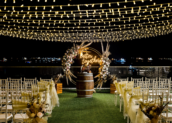 The space gives you the option of an outdoor rooftop wedding or an elaborate indoor setting, so you can always have a backup plan should the weather not be on your side that day.