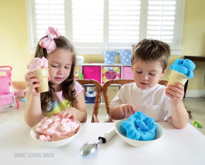Instead, you can get your child to help you make their own playdough using very simple ingredients you probably already have in your kitchen. Here’s a quick 4-minute no-cook recipe, or you can also try this 2-ingredient edible playdough that looks just like ice cream!