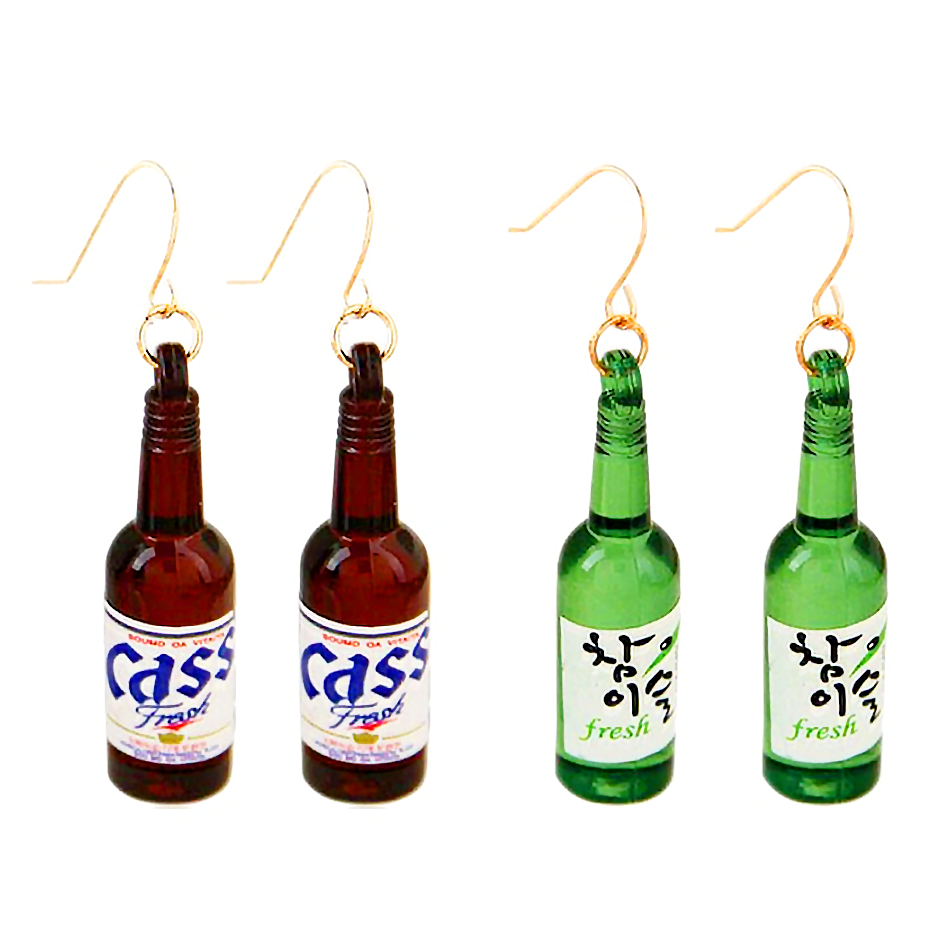 The ultimate combination to go with KBBQ, these Soju and Cass Beer earrings are a match made in heaven. Buy both pairs so that you can always style them in their “Somaek” combination to any occasion with meat on the grill. No alcohol tax included in this pair!
