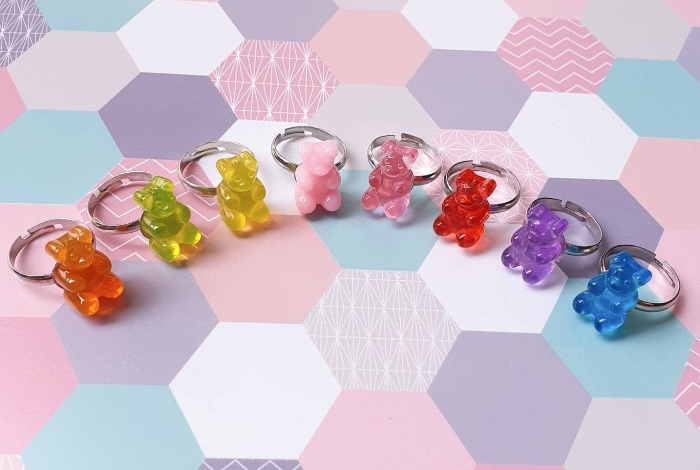 Admit it, when you have a bag of gummy bears, you’re guilty of rummaging around looking for your favourite colour of yummy. You’ve got a whole selection of colours here – pick your favourite or wear as many as you want!